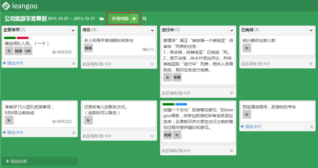 - 开启看板折叠视图后,您可以快速浏览各泳道优先级较高的卡片内容