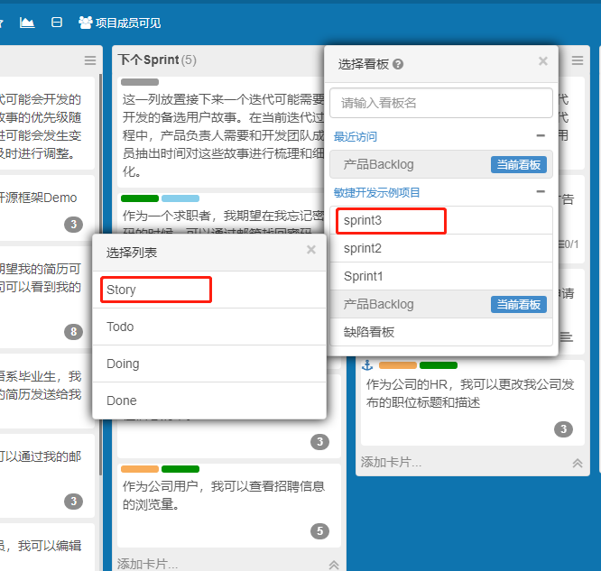 优化后,可以将整列的卡片全部引用到其他看板上已存在的列表中去。