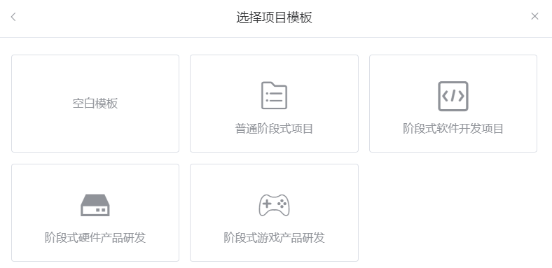 阶段式项目类型提供了普通阶段项目模板和软件、硬件、游戏产品的研发流程模板,你可根据实际项目种类选用参考。