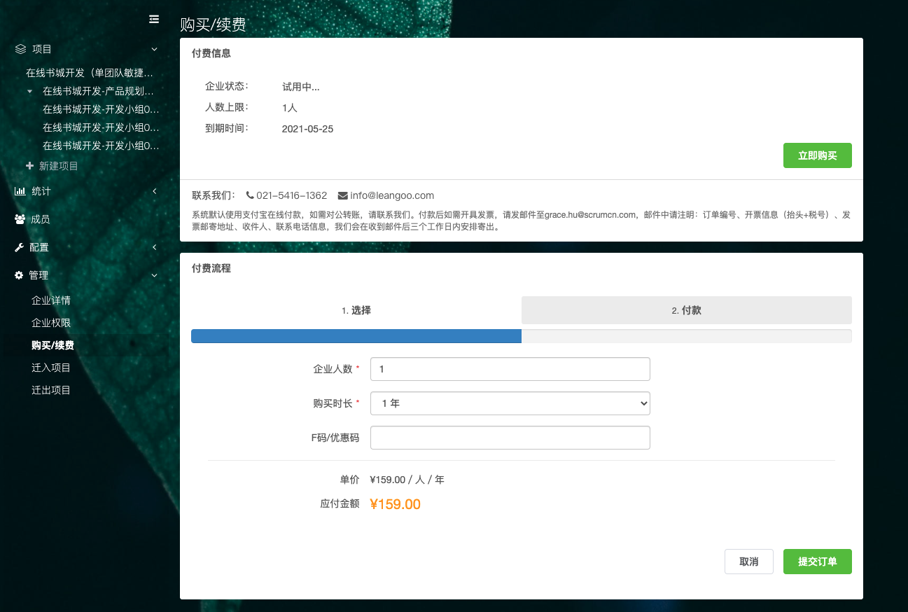 企业版购买或续费的时候不再限制人数,1人也可以购买。