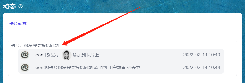 通过卡片动态功能,您可以快速的查看和您相关的卡片动态,以便更便捷的了解任务变更信息。