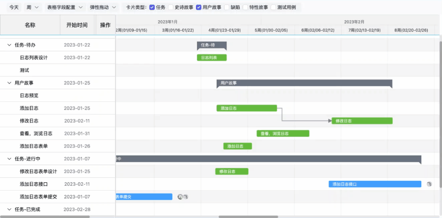 企业版支持看板时间线视图模式。看板进入时间线视图模式后,可以从时间尺度更直观的查看卡片、进度趋势,很便捷的对卡片进行排程、操作、标注卡片间的前后置关系。