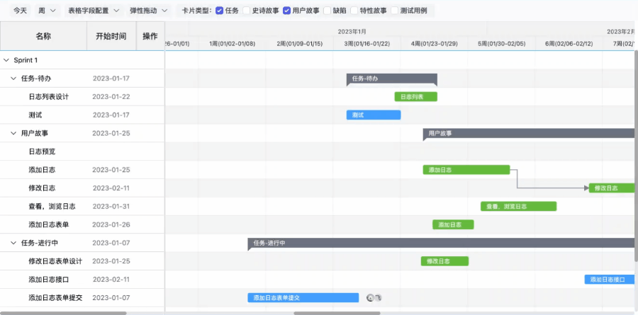 卡片类型筛选区会默认勾选此看板的默认卡片类型,通过勾选卡片类型筛选展示在视图中的卡片。