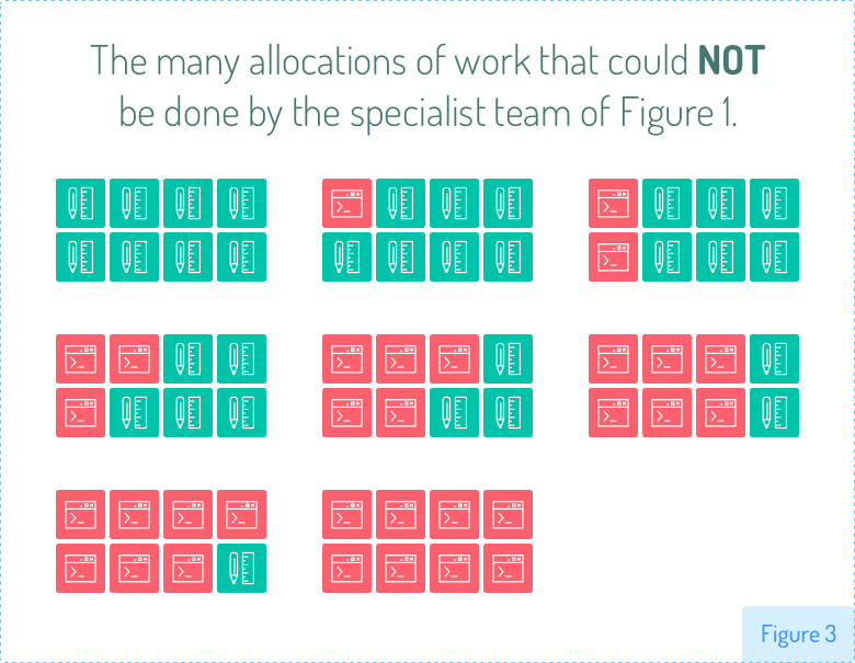 但是,任何没有在红色和绿色工作之间平均分配的工作,这个团队都不可能完成。这意味着图1的专职团队不可能完成图3所示的任何分配工作。