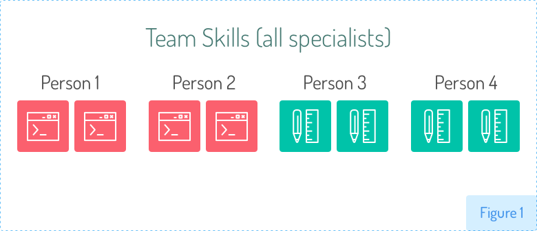 然而,过多地依赖专职人员确实会给敏捷团队带来问题。太多的专一技能成员导致很难平衡可以带入冲刺的工作类型。