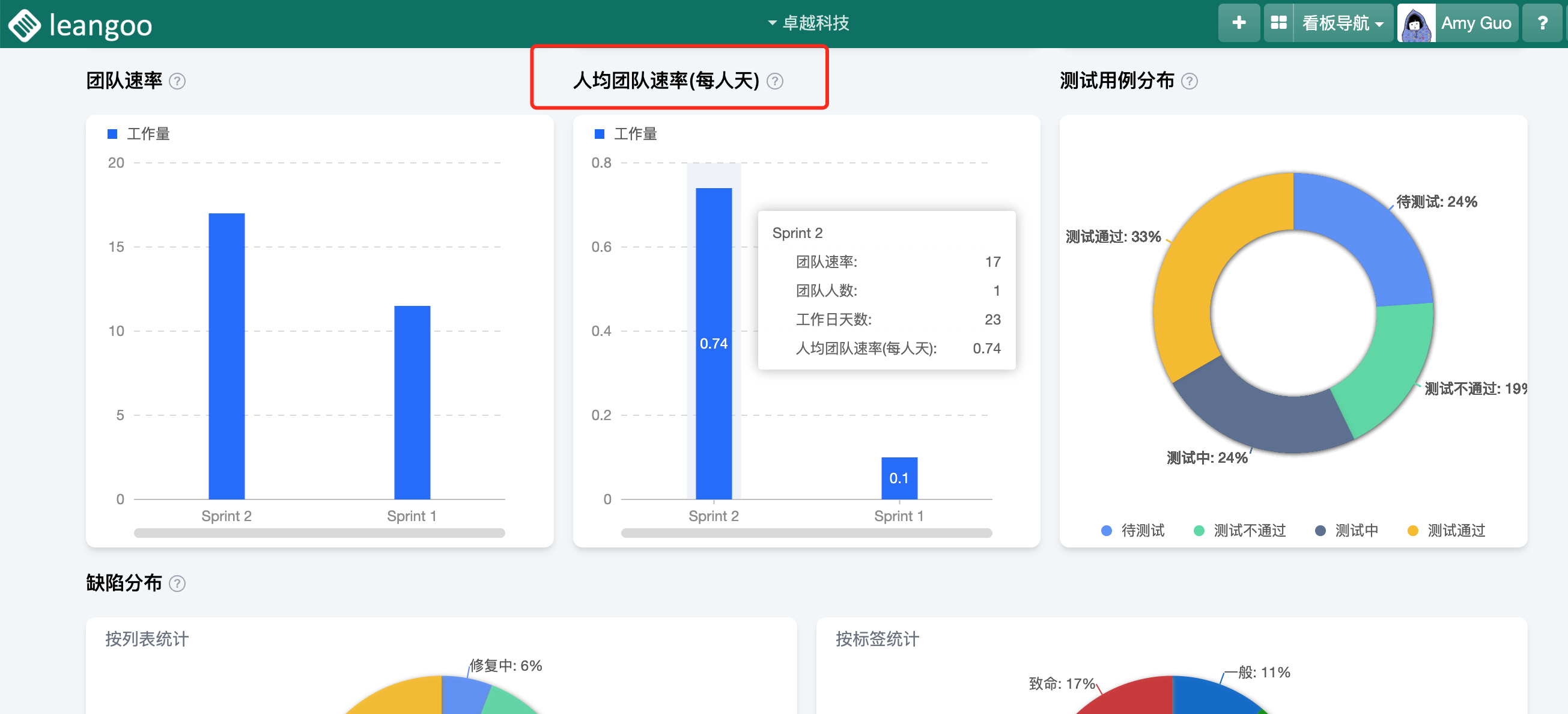 人均团队速率:清晰展示团队成员的工作效率,为资源分配和任务规划提供数据支持,优化团队生产力。