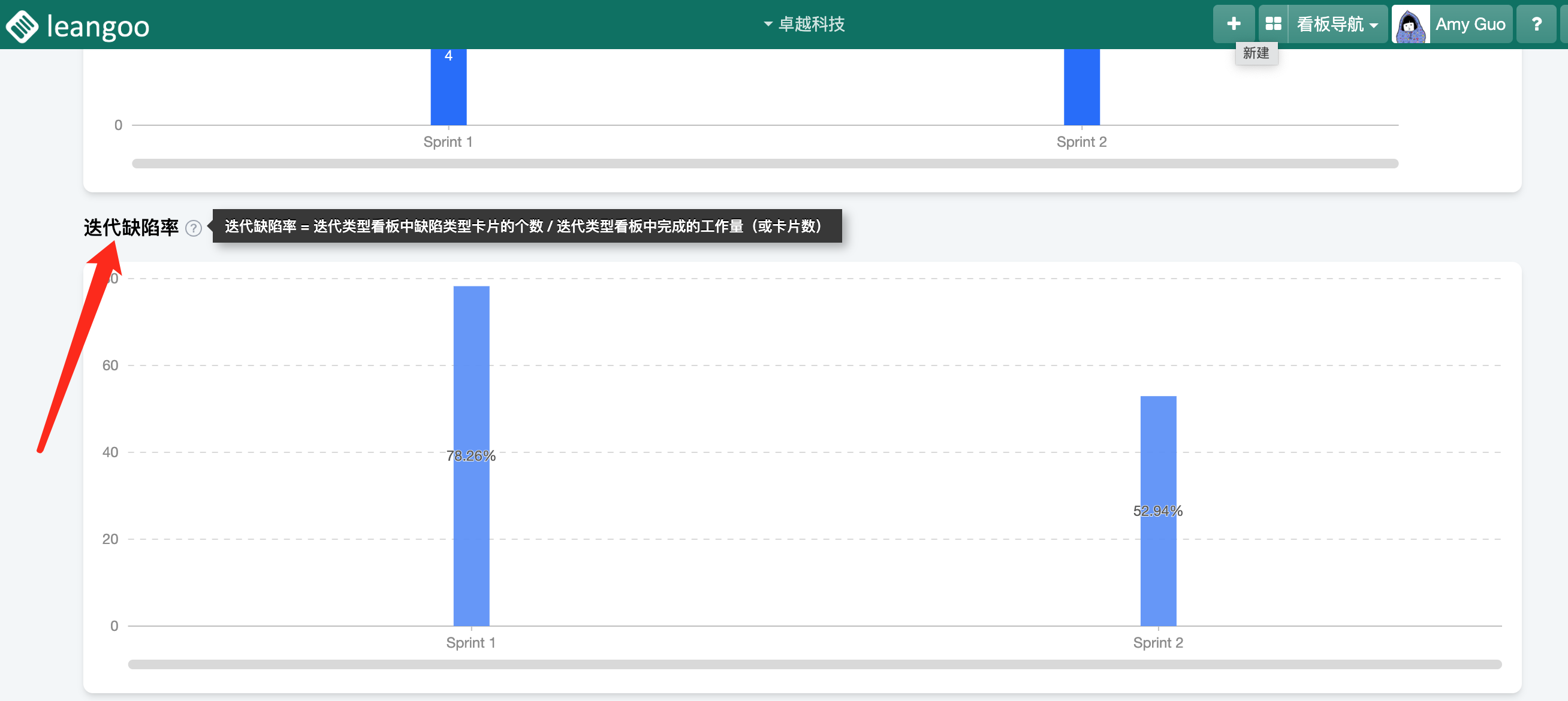 3、单团队敏捷项目、safe子项目、sos子项目中,新增“迭代缺陷率”、“人均团队速率”统计图表