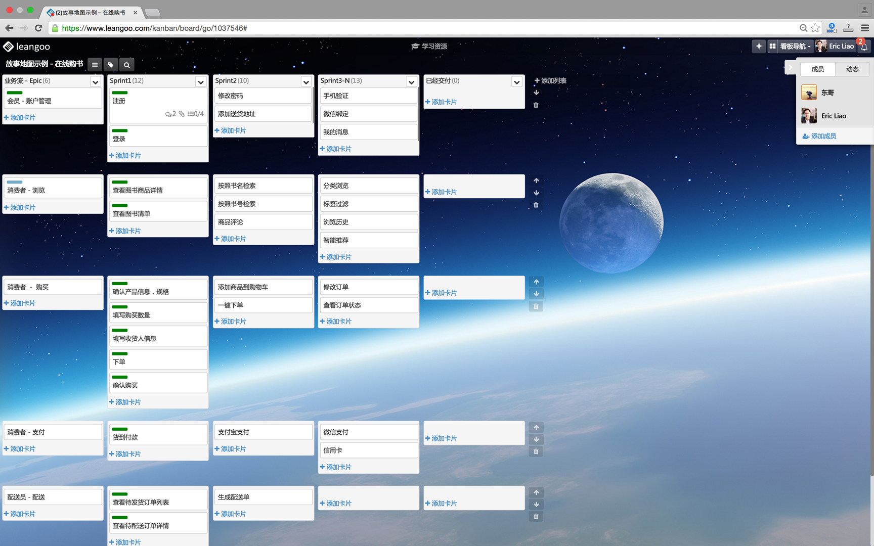 Leangoo实现的购书网站的故事地图示例如下图所示:
