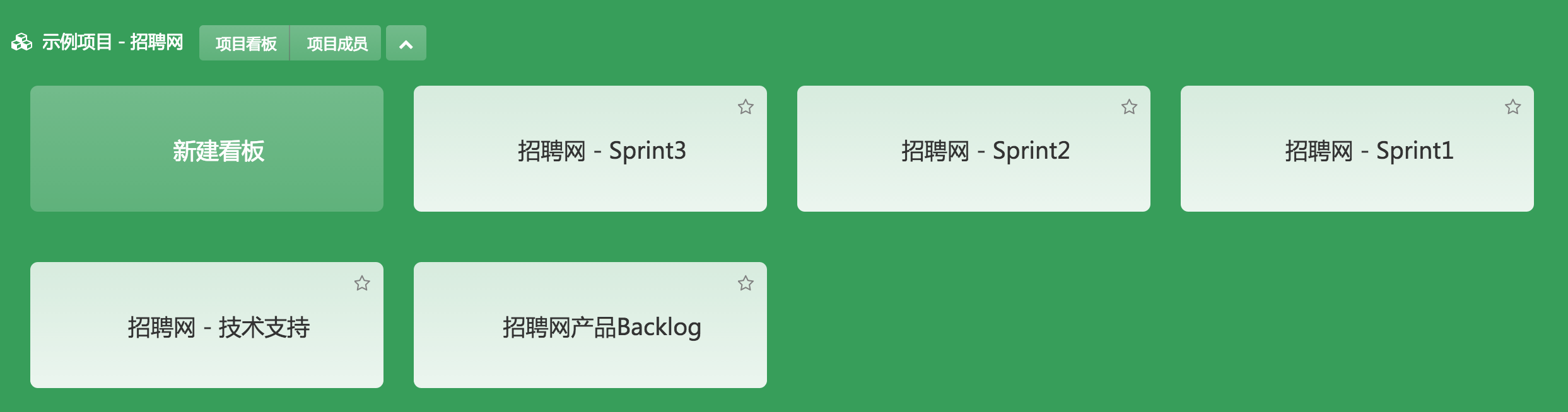 1,项目管理:用户可以新建一个项目,并在项目内添加看板和成员,实现项目内的协作。如下图,一个位于“看板清单”页面的示例项目: