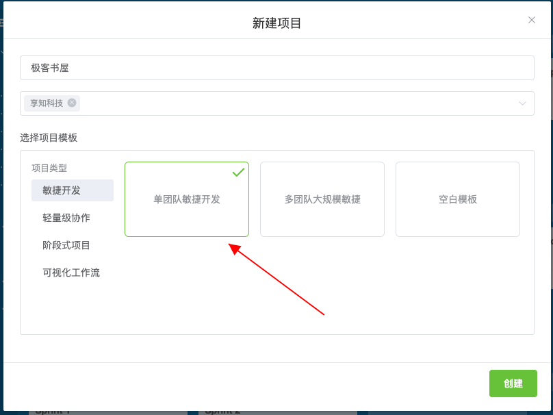 新建一个单团队敏捷开发项目