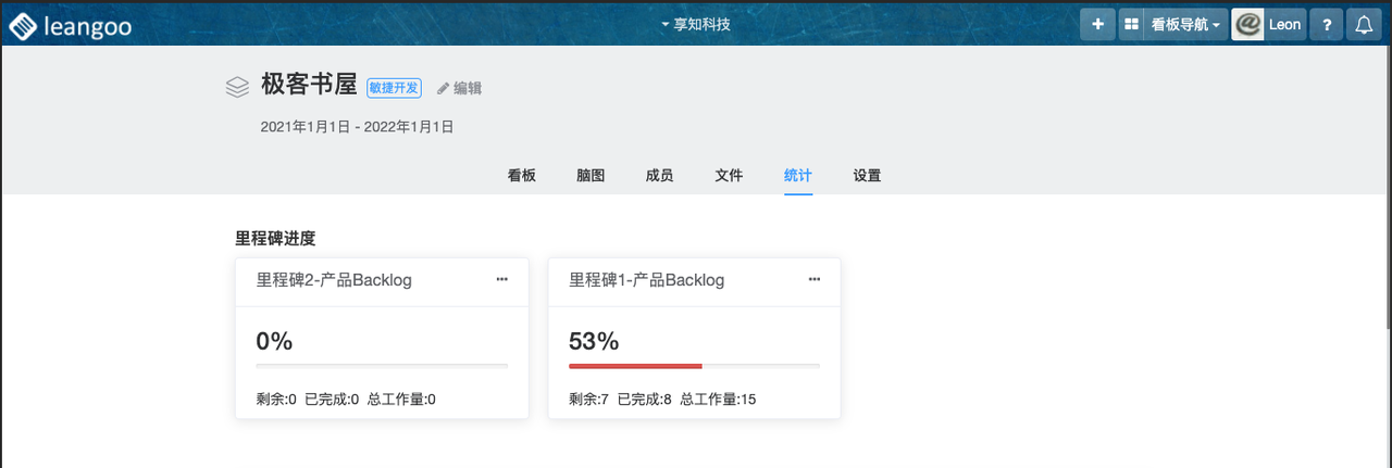 在敏捷开发类型的项目中,项目会统计项目内每个产品Backlog(里程碑)的进度,以便团队可以从项目上直观的看到里程碑进展。