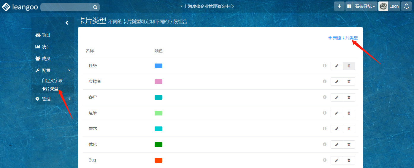 企业版已经内置了4种卡片类型:任务、史诗故事、用户故事、缺陷;您还可以根据自己的业务添加自定义卡片类型,并设置其包含的自定义字段。