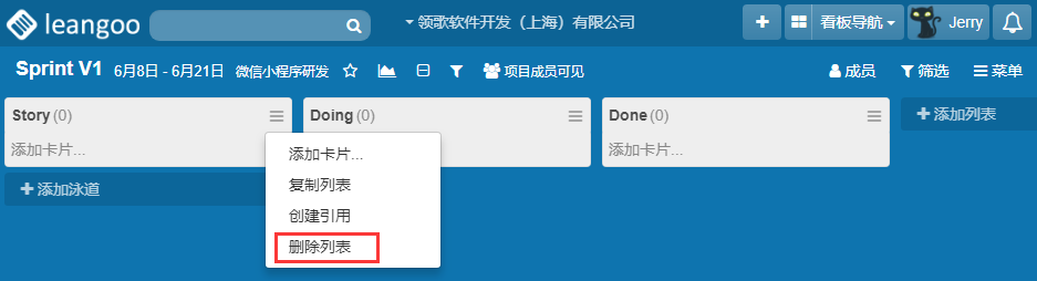 按钮即可删除当前列表。列表删除后,可以在看板回收站中撤销。