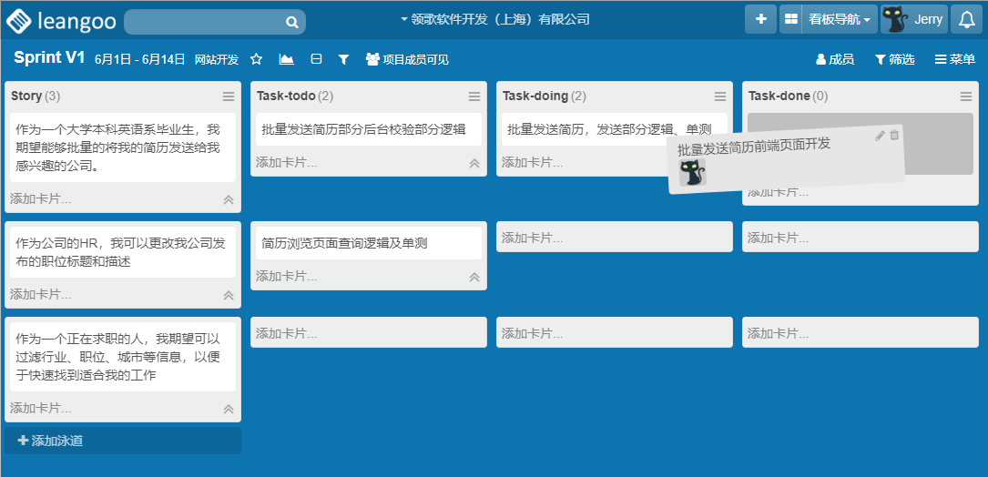 领歌的拖拽功能很方便对看板内的列表、泳道和卡片进行操作。看板上所有卡片都支持在不同列表,不同泳道间拖拽。