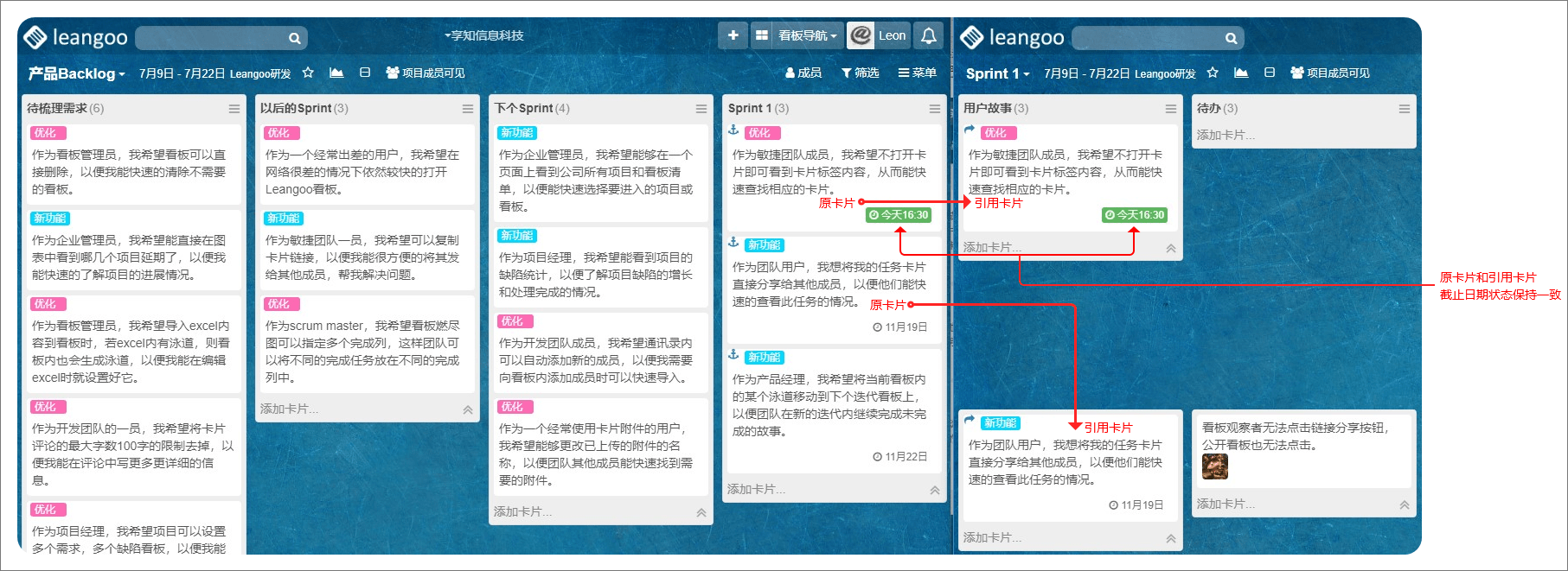 如果您勾选了引用卡片的截止日期状态,则原卡片状态也会同时改变,相反操作也一样。原卡片始终和引用卡片的截止日期勾选状态保持一致(如下图)。