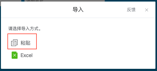 选择导入方式为粘贴