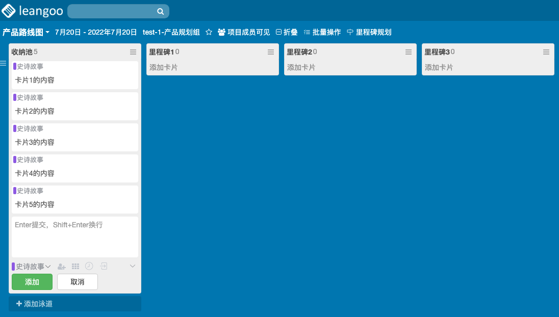 添加成功后,在看板上就能看到多张卡片已经依次被加入了。