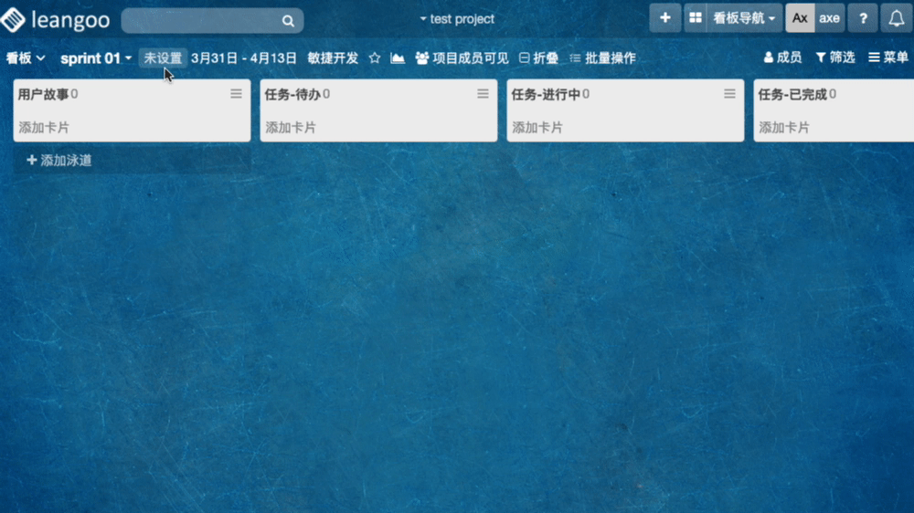 在看板中新增了显示看板状态和状态切换功能,看板的状态有四种:’未开始’,’进行中’,’已结束’,’未设置’。大部分看板创建后的初始状态均为’未设置’,但在 SAFe 项目中的看板初始状态一般为’未开始’。在看板清单页、项目详情页中的每个看板上会显示该看板的状态。