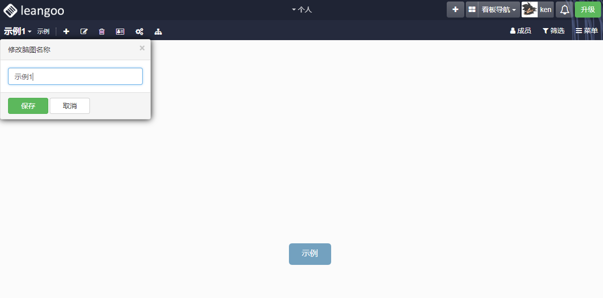 在脑图页面可以对脑图名称进行编辑修改,也可直接切换到项目中其他的脑图页面中去。