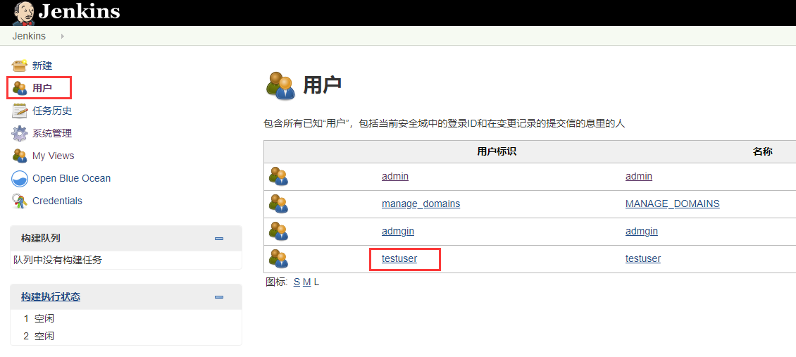 用户,选择您当前登录的用户(比如:testuser),并点击该用户进入用户界面b. 依次点击