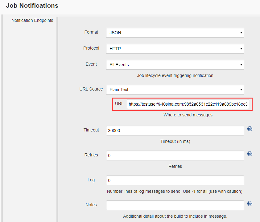- 配置 Job Notifications 的 URL。点击