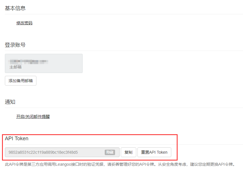设置,Show API Token...按钮,即可获取您的 User ID 和 API Token