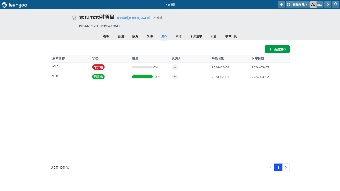 在领歌企业版的每个项目中,可独立管理该项目的版本发布信息。项目管理员有发布相关的编辑权限,项目普通成员则只有发布相关的查看权限。