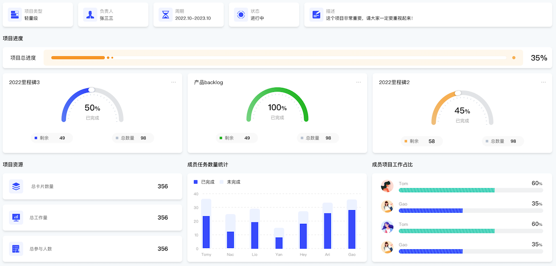 对于运营总监来说,Leangoo 提供了一个便捷的全局视角。通过任务状态和团队成员分工的可视化展示,