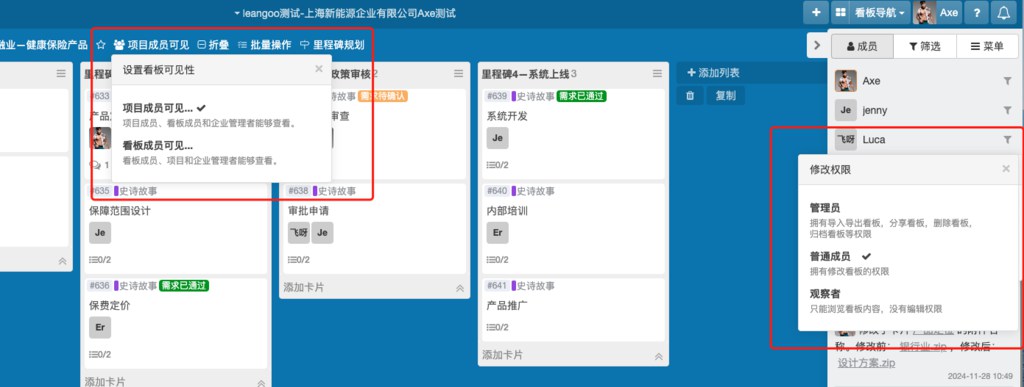 保险行业对数据安全有着极高的要求。Leangoo 提供了灵活的权限管理功能,可以根据项目需求设置不同的访问权限。例如,敏感数据只对特定团队可见,任务卡片的编辑权限可以限定在小范围内,确保信息的安全性和合规性。