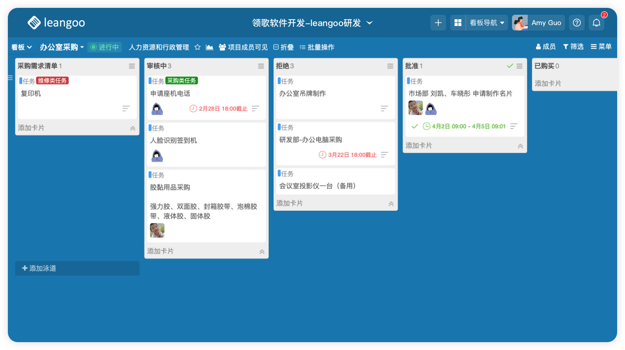 Leangoo看板内可以通过标签筛选任务。