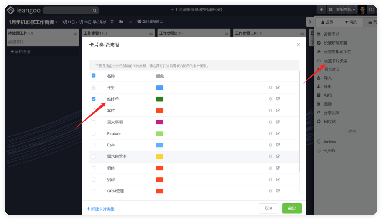 看板内设置卡片类型